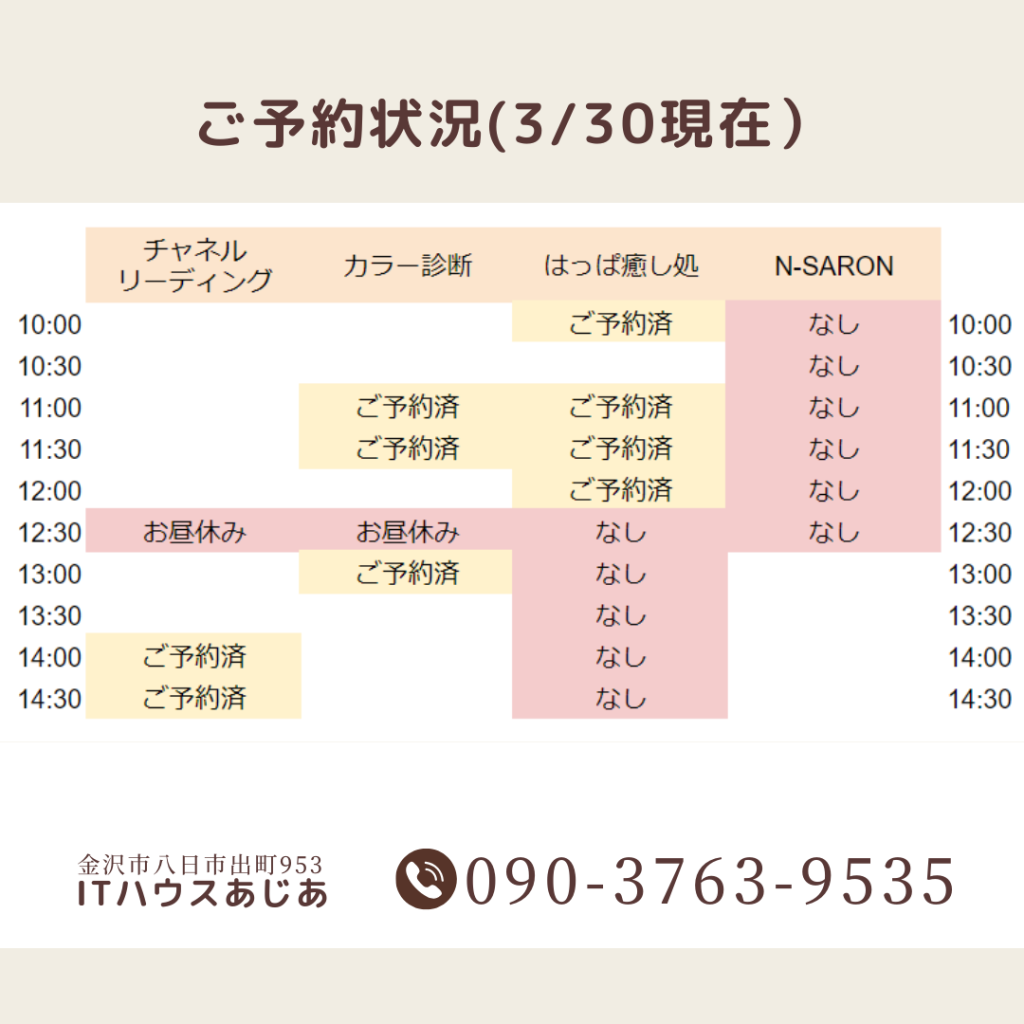 (ご予約状況は刻々とかわります)ご希望の方はお早めに!