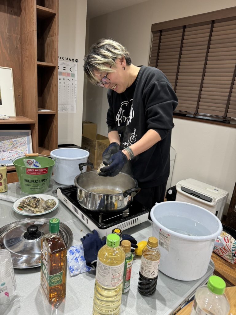 みんなで牡蠣を食べながら 歌い 騒いで最高の夜でした!