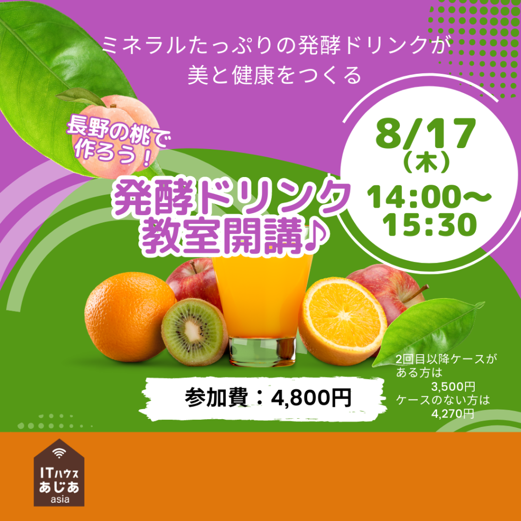 桃のミネラル醗酵ドリンク教室開講します!
